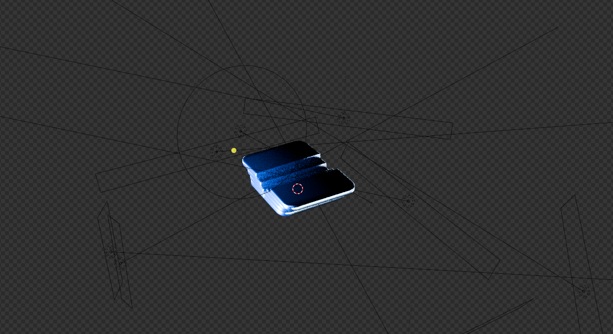 The only material used in the 3D portion of this project was a default BSDF with the roughness adjusted slightly. The rest of what appears to be materials are all just LIGHTs . As seen in the screenshot below. I used various shapes and colours of lights to paint in the highlights where I needed them, which combined with some simple post-processing gave us the clean and simple result you see above.